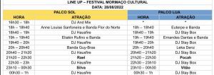 A programação musical do evento acontecerá em dois palcos que compõem o festival: Lua e Sol. Os shows, sendo em sua maioria com início às 18h, ocorrem de forma simultânea e seguem até 1h.