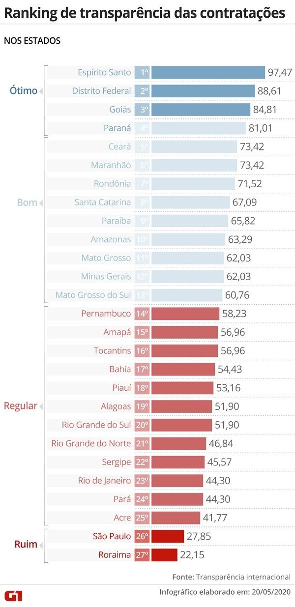 O que vem sendo comentado aqui, neste espaço, apenas se confirma no levantamento feito pela Transparência Internacional: o Governo de Roraima e a Prefeitura de Boa Vista estão na lista de menor transparência em contratações emergenciais durante pandemia do coronavírus.