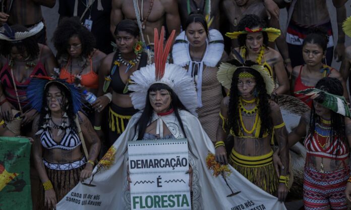 “E este ano nós trazemos como tema: ‘Nosso futuro não está à venda, a resposta somos nós’, justamente pegando ali o arcabouço dessa discussão geopolítica na disputa, principalmente, por metais raros, que está as terras indígenas ali sendo colocada com um grande potencial exploratório; a flexibilização da legislação brasileira na questão do licenciamento ambiental, com a lei que foi aprovada do marco temporal.”