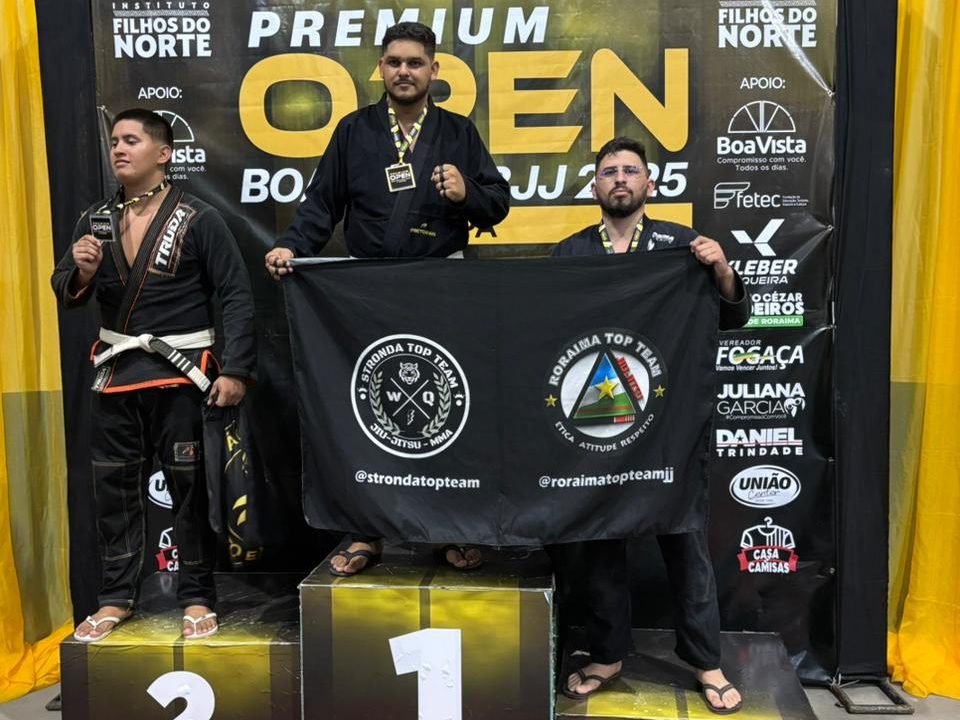 A Academia Stronda Top Team, filial da Roraima Top Team, conquistou 20 medalhas — sendo 12 de ouro, seis de prata e duas de bronze — durante a I Etapa do Premium Open de Jiu-jitsu 2025, realizada neste domingo (5), no ginásio Poliesportivo Senador Hélio Campos, em Boa Vista.
