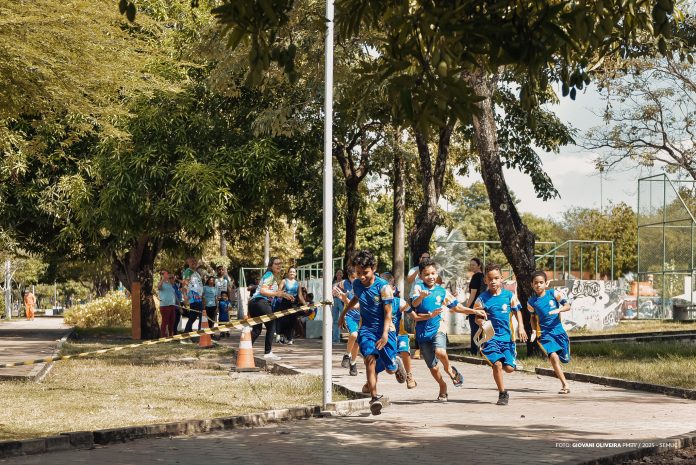 Os alunos das escolas Ana Sandra Nascimento, Emília Rios, Luiz Canará, Newton Tavares, Hilda Franco, Laucides Inácio Oliveira e Francisco Bríglia percorreram o trajeto acompanhados de seus professores e, ao final, celebraram com medalhas e diversão na fonte interativa.