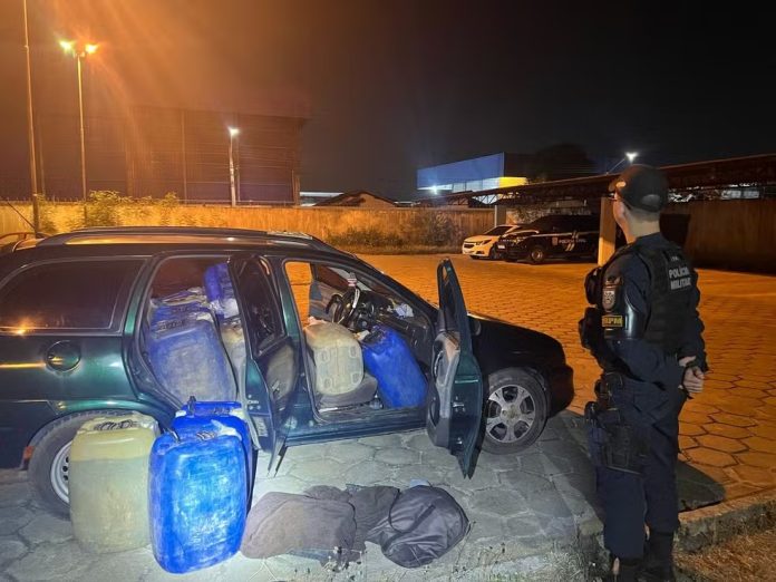 Durante a inspeção, os policiais localizaram os galões contendo o combustível. O carro e o material apreendido foram encaminhados ao 4º Departamento Policial, onde serão tomadas as medidas cabíveis. O suspeito de transportar a gasolina não foi localizado.