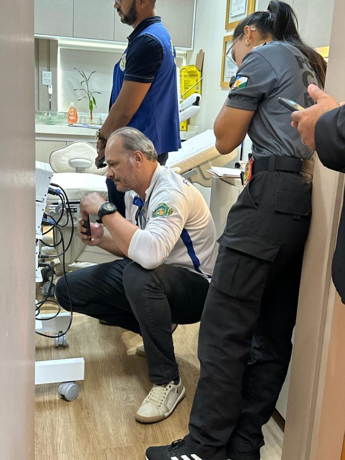 A vistoria foi realizada pelas Vigilâncias Sanitárias Estadual e Municipal no consultório e foi acompanhada pelas equipes do 1º DP.
