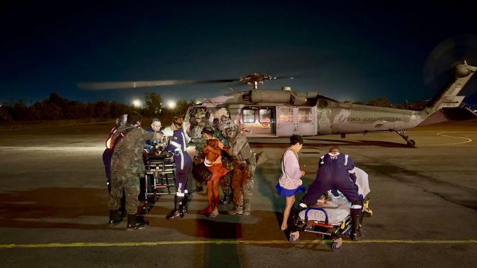 Na madrugada desta segunda-feira (28), o Comando Operacional Conjunto Catrimani II realizou evacuação aeromédica (EVAM) emergencial para salvar a vida de dois indígenas da etnia Yanomami, sendo uma adulta com malária cerebral em estado grave e uma criança com desidratação severa. Diante da gravidade da situação e da urgência médica, a operação foi mobilizada para garantir o transporte dos pacientes até uma unidade hospitalar com capacidade para atendimento especializado. Esta já é a 14ª EVAM realizada pelo Comando Operacional Conjunto desde o início da Operação Catrimani II.