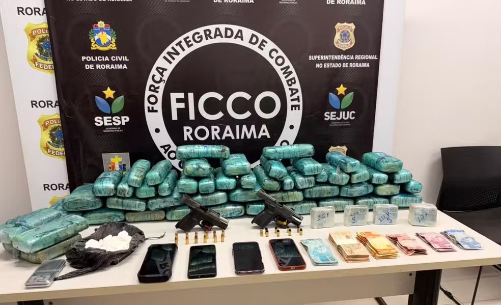 Três pessoas foram presas em flagrante na quarta-feira, 11, com 38 quilos de cocaína e skunk, duas pistolas com numeração suprimida, munições e R$ 46 mil em espécie durante operação da Força Integrada de Combate ao Crime Organizado em Boa Vista.