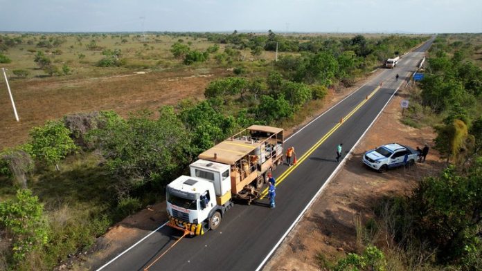 Departamento Nacional de Infraestrutura de Transportes (DNIT) está trabalhando na restauração de 24,7 quilômetros da BR-174, em Roraima, no município do Amajari, sentido Pacaraima.