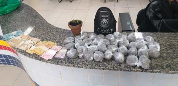Droga e dinheiro foram apreendidos e levados pela PM- Foto: Divulgação/PM