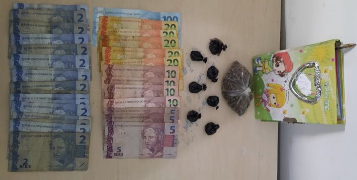 Os policiais estiveram na casa da mulher acusada de fornecer as drogas e, durante as buscas, na cozinha em meio a latinhas de cervejas vazias, dentro de uma bolsa, foi apreendido um pequeno pacote de maconha, enrolado em um saco plástico e seis trouxinhas menores, além de R$ 180. A mulher negou sua participação no tráfico de drogas. Diligências continuam para localizar o comerciante.