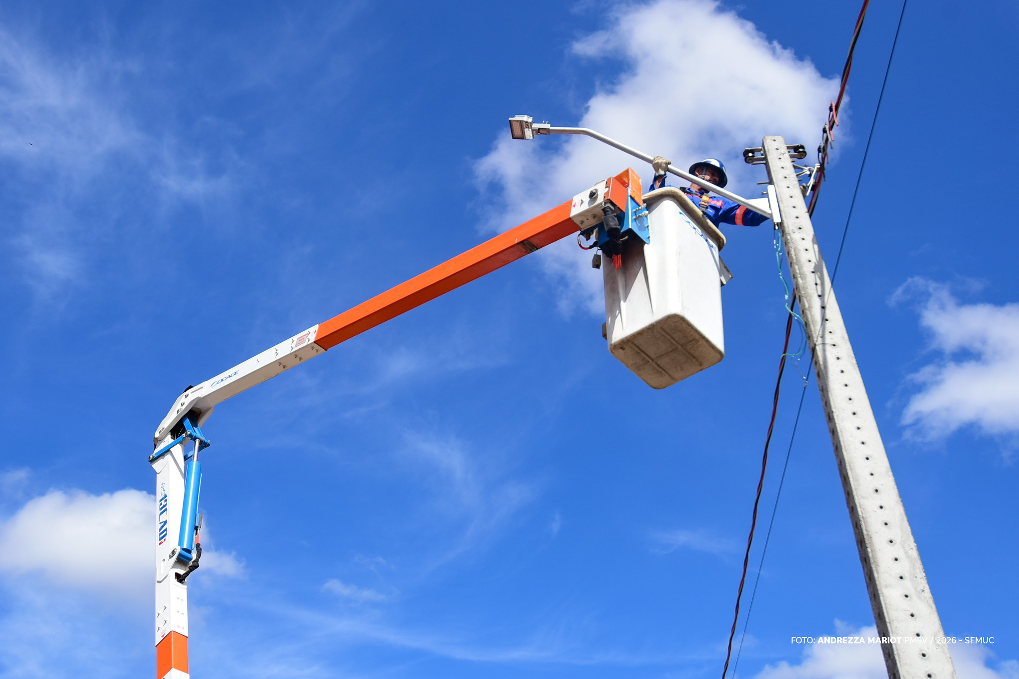 O bairro João de Barro recebeu 169 novos pontos de iluminação pública em LED no início de 2026. As luminárias substituem o modelo convencional e passam a atender ruas e áreas de circulação do bairro com equipamentos de maior eficiência energética.