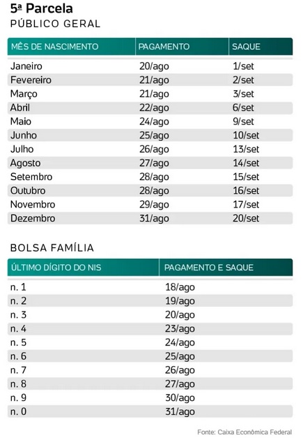 A Caixa Econômica Federal deposita nesta quarta-feira (25) a quinta parcela do auxílio emergencial para trabalhadores informais nascidos em junho.