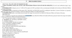 O Ministério Público de Roraima publicou a relação dos membros que irão compor a comissão organizadora do concurso público da instituição. O documento está disponível no Diário da Justiça Eletrônico, com data da última quarta-feira (16).