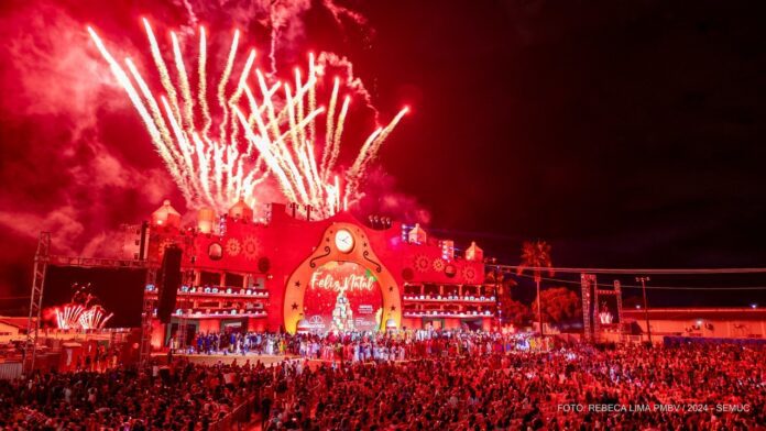 Com recorde de público, o Natal da Paz 2024 fez história mais uma vez, reunindo neste sábado, 14, mais de 35 mil pessoas na Praça Aderval da Rocha, bairro Pintolândia. O espetáculo, que este ano trouxe o tema “Uma Aventura de Noel”, encantou as famílias com uma mistura de arte, tecnologia e claro, muita emoção. Quem esteve lá, foi surpreendido por uma superprodução, repleta de figurinos deslumbrantes e cenários imersivos.