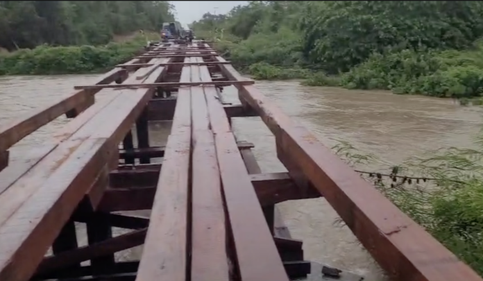 A ponte sobre o igarapé Tucumã, na RR-203, começou a ceder e deixou moradores da região da Serra do Tepequém isolados, segundo relatos de quem vive na localidade. Vídeos enviados à reportagem mostram a estrutura comprometida no acesso à Vila do Paiva.