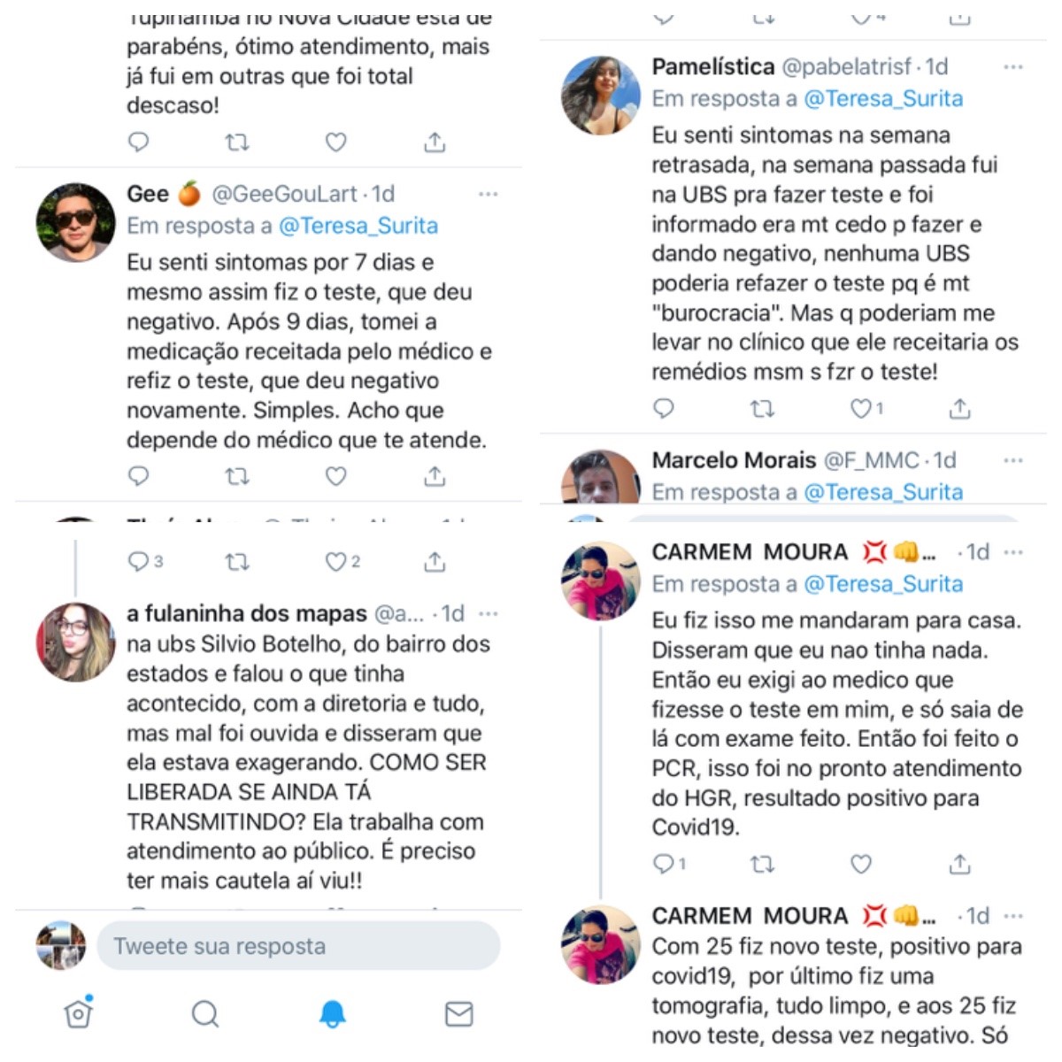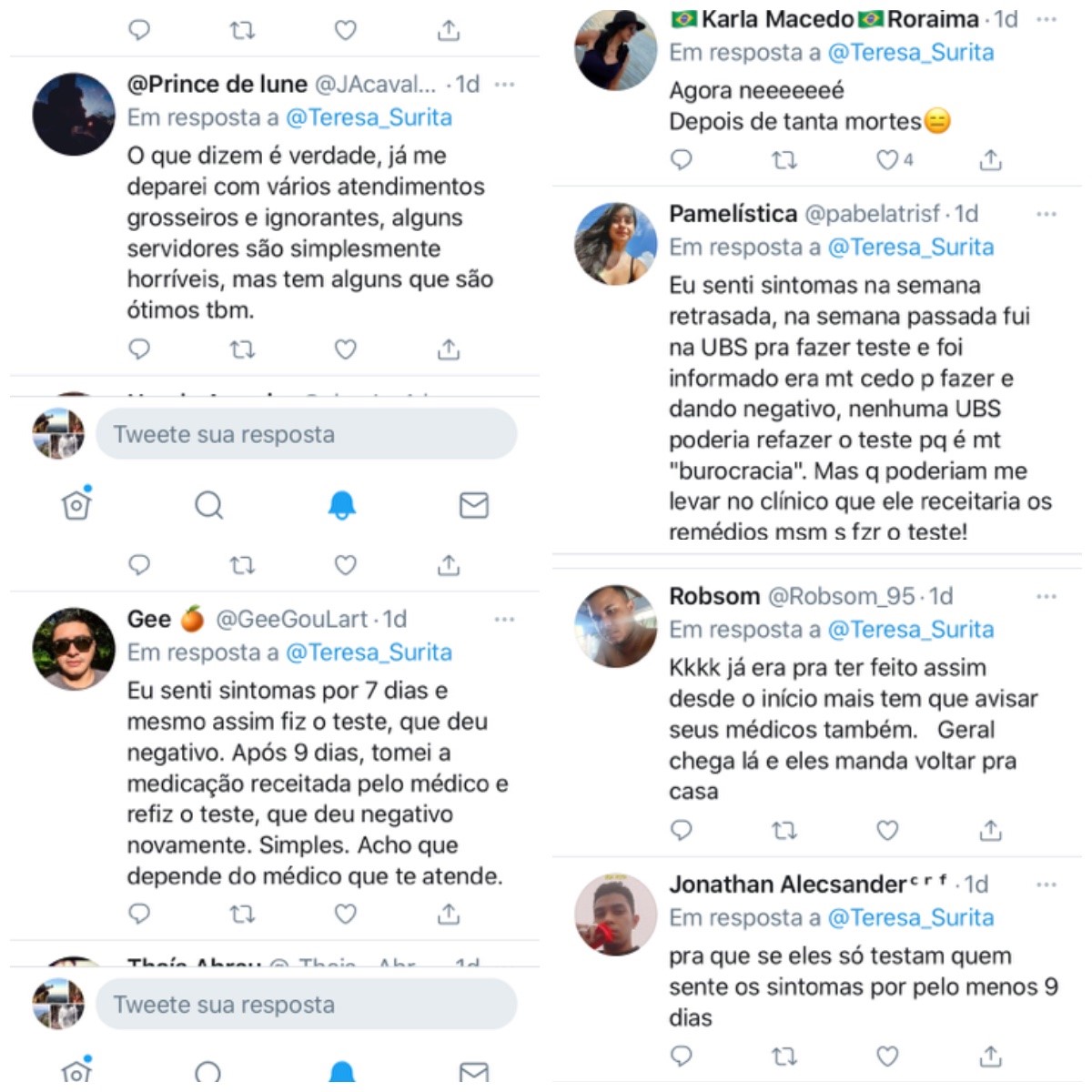 Na sua bolha virtual, o Twitter, Teresa ignorou as várias postagens de internautas reclamando do atendimento nos postos de saúde e fingiu que não era com ela. Ignorou solenemente a falta de um protocolo entre os médicos, que estão mandando os pacientes de volta para casa sem ao menos administrar os medicamentos para prevenir a doença.