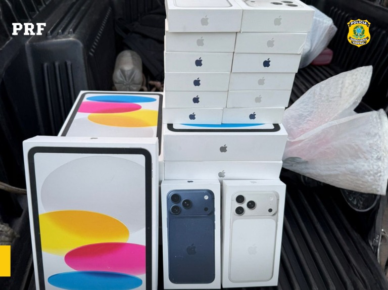 A Polícia Rodoviária Federal (PRF) apreendeu 10 iPads e 14 iPhones 17 Pro Max, recuperou uma motoneta com sinais de adulteração e prendeu um homem por promoção de imigração ilegal durante fiscalizações realizadas no fim de semana em Boa Vista, em Roraima.