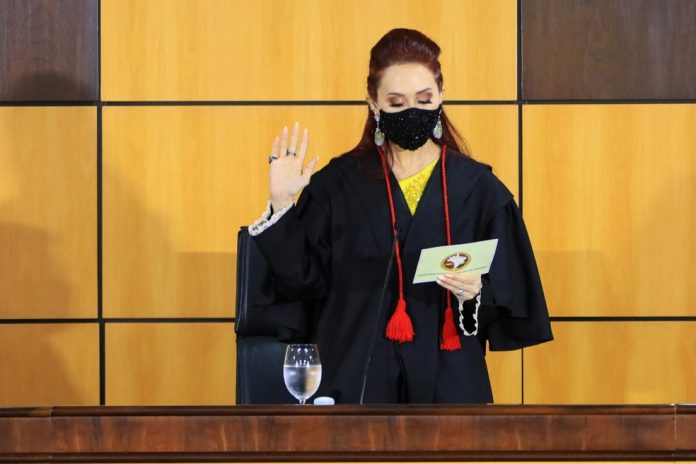 A Procuradora-Geral de Justiça do Ministério Público do Estado de Roraima, Janaína Carneiro Costa, foi reconduzida no cargo para os próximos dois anos, nesta sexta-feira (12) de março. A cerimônia ocorreu de forma híbrida, no auditório do edifício-sede do MPRR, e transmitida pelo canal da instituição no YouTube.