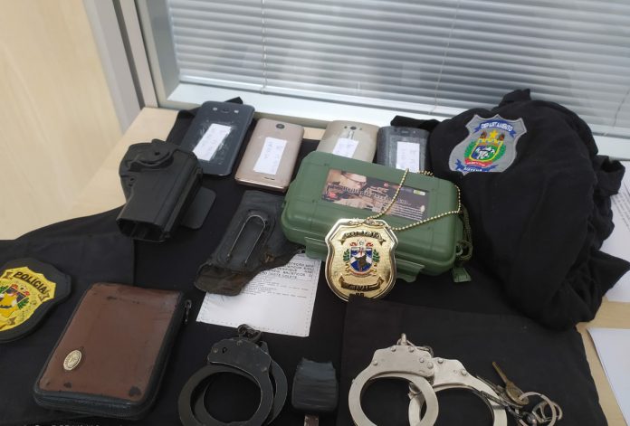 Durante as buscas, foram apreendidos dois coletes a prova de bala, coldres, duas algemas, vários aparelhos de telefone celular e o veículo usado no assalto.Eles foram autuados em flagrante pelos crimes de roubo com emprego de arma de fogo, com concurso de pessoas e associação criminosa. Na manhã deste domingo (10) os quatro acusados foram apresentados na Audiência de Custódia e tiveram suas prisões decretadas.