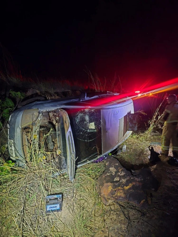 Durante o acompanhamento, ele perdeu o controle da direção ao entrar em um trecho de terra às margens da via. O carro desceu um barranco de cerca de três metros e capotou.
