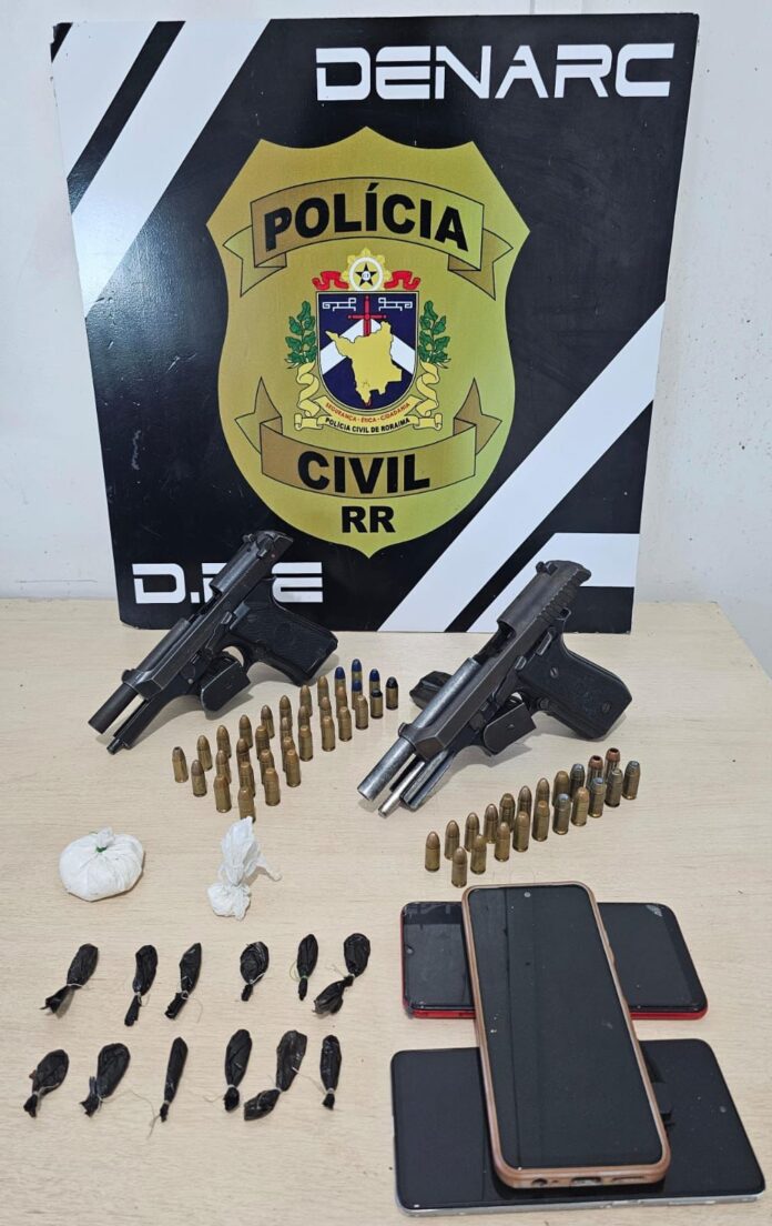 Uma operação da PCRR (Polícia Civil de Roraima) ocorrida em uma vila residencial, no bairro Senador Hélio Campos, na tarde de ontem, 27, resultou na prisão de três venezuelanos e na apreensão e duas armas de fogo e drogas. Eles são investigados por execução de rivais na disputa território do tráfico de drogas.