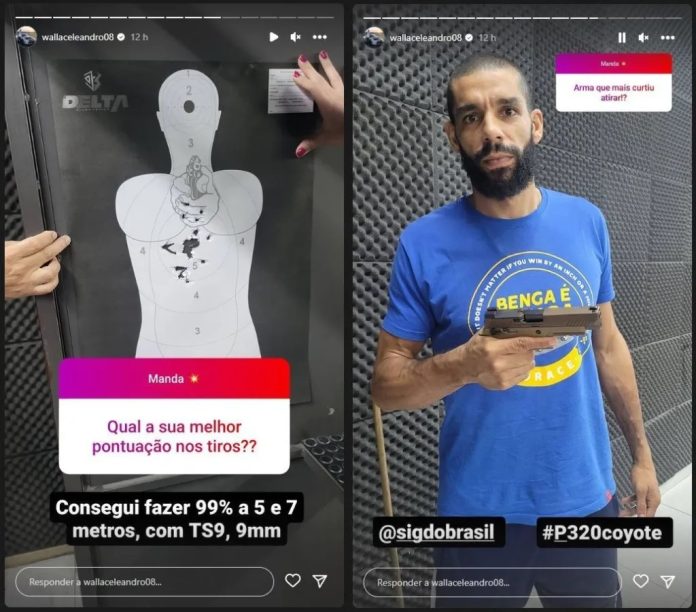 Na terça-feira (30), Wallace publicou foto com uma foto com uma arma em um ambiente que parece ser um clube de tiro.